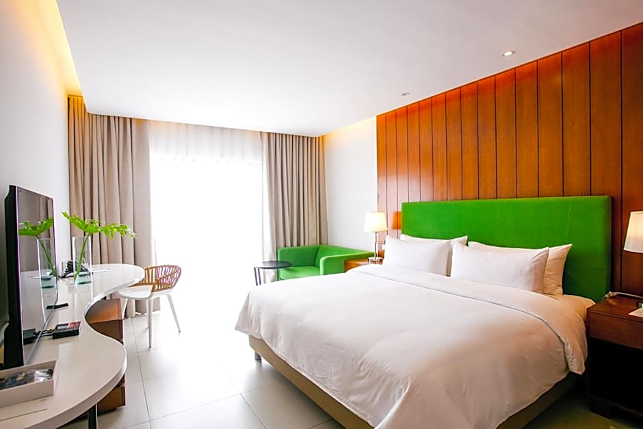 Deluxe Premier includes either a king-size bed 150-183 width or 2 double beds 131-150 width plus balcony, desk, satellite tv , cable tv, hairdryer, tea and coffee making facilities , safe, and slippers.